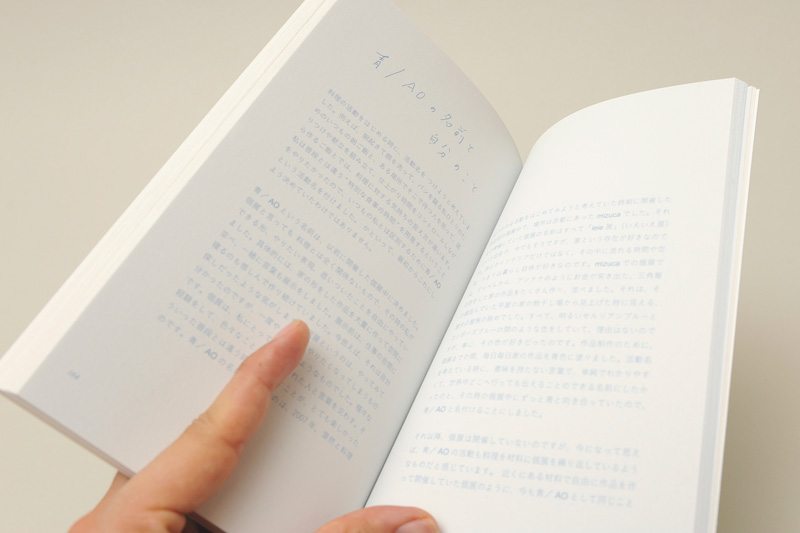 1978年 京都出身。2001年より永井宏氏のワークショップに参加。その繋がりで2008年〜10年まで大阪枚方のソーイングギャラリー代表をつとめる。ギャラリーをするうちに少しずつ料理、食事に関わるようになり、2007年から“青/AO”を開始。現在もマイペースに活動している。