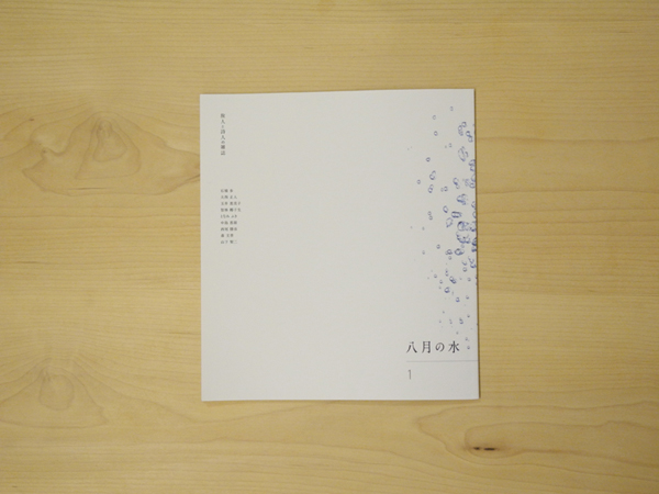 ブックロアより「朝のはじまり」「言の森」「耳の人」と三冊の詩集を出版する詩人、西尾勝彦。彼が編集人となり作る「旅人と詩人の雑誌 八月の水」の第五号です。この雑誌が創刊されたきっかけは、東北大震災と、その後を見つめたことから。これから、どんな時代になるのだろうと考え、こんな時代になって欲しいと願いをこめて生まれました。